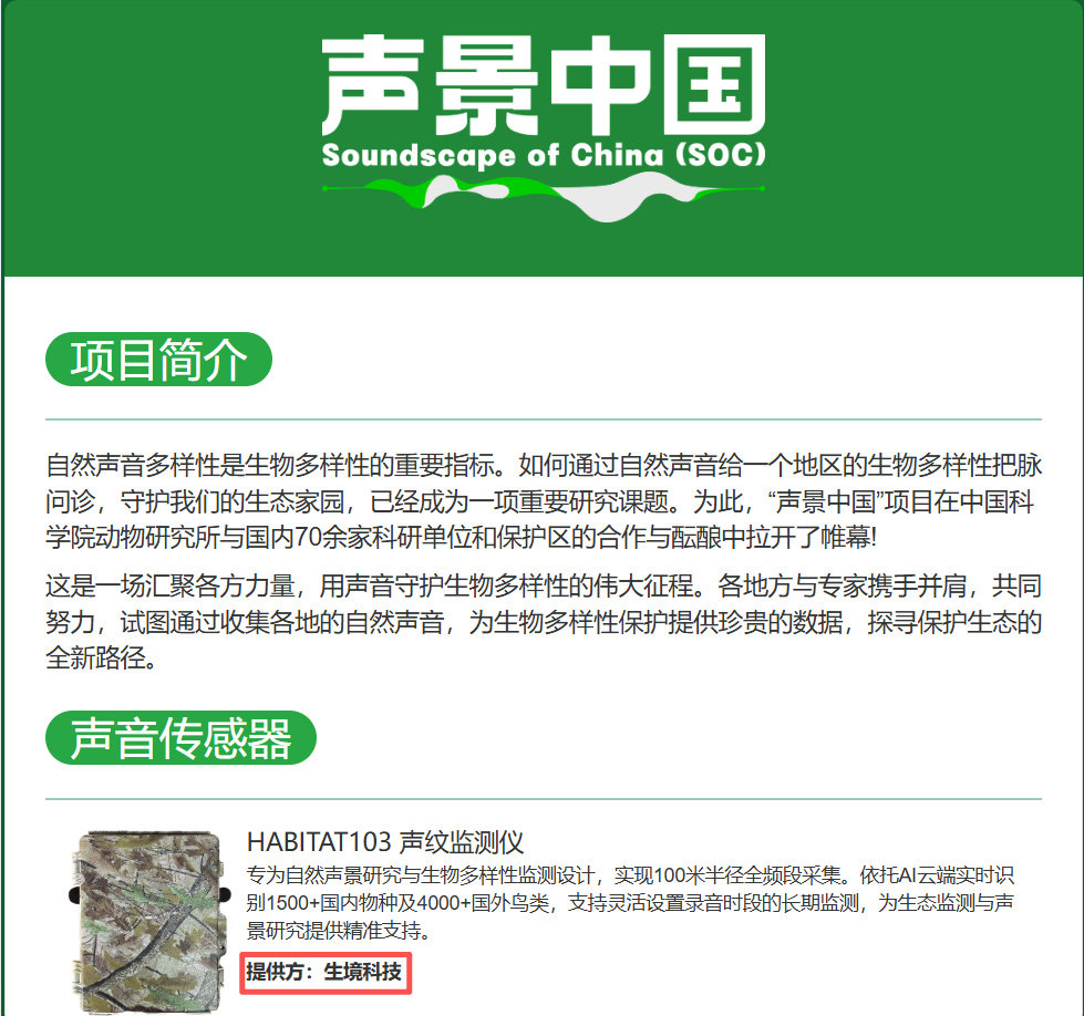 我们衷心祝贺“声景中国”项目获得国际认可,也感谢中国科学院动物研究所及各合作单位的信任与支持。